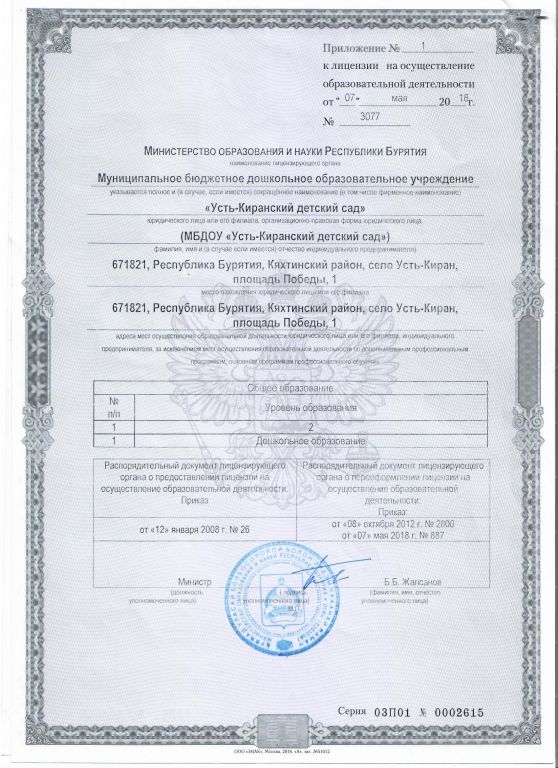 Лист записи ЕГРЮЛ 2019г. Документ подписан электронной подписью Серийный номер 603332450510203670830559428146817986133868575783 Директор/Заведующий Бадматарова М. Н. Дата подписания документа 09.09.2022 07:58:43 (скачать) (посмотреть)